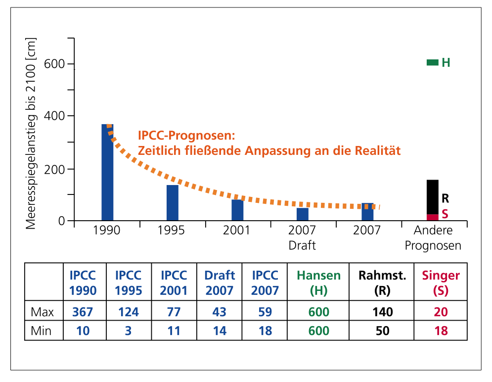 – Angaben zum prognos. Meeresspiegelanstieg (IPCC und Hansen)