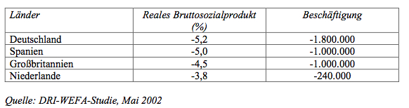 Der Think Tank DRI/WEFA () hat vor sieben Jahren eine andere Schätzung präsentiert. Zwar ist diese Studie inzwischen offensichtlich ein wenig überholt, aber die Größenordnungen ihrer Ergebnisse erscheinen nach wie vor realistischer als die anderer Studien.