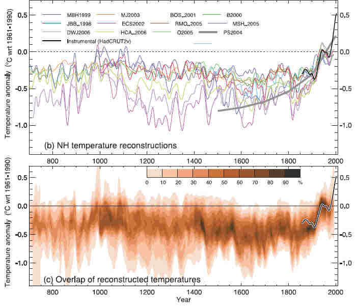 Die Rekonstruktionen im IPCC report stammen aus verschiedenen Methoden und wie die Autoren ihren „best fit“ (im methodischen Sinne) ermitteln, ist Inhalt der papers und muss nicht unbedingt im IPCC nochmal wiederholt werden. Ihre Frage ist berechtigt, aber Schlußfolgerungen aus der Tatsache, dass die Kurve abgeschnitten wurde, sind Spekulationen. Ich halte Ihre Schlußfolgerungen einfach für oberflächlsich und unsachlich. Ich glaube nicht, dass Sie sich detailliert genug in der Materie auskennen, um zu wissen, warum dies so oder so gemacht wurde.