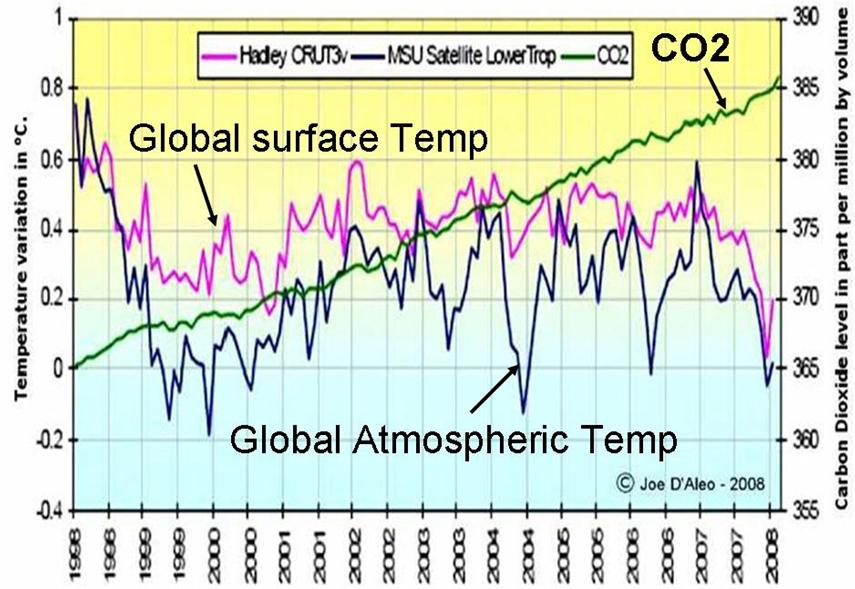 Die Abbildung 13 zeigt deutlich, dass es keinen Zusammenhang zwischen atmosphärischem CO2-Gehalt und Temperaturen gibt – obwohl der CO2-Pegel weiter deutlich steigt, fallen seit Beginn dieses Jahrhunderts die Temperaturen.