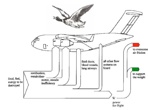Über fast elf Größenordnungen folgen Insekten, Vögel und Flugzeuge annähernd diesem Verhalten. Die verbleibenden Abweichungen sind wahrscheinlich eine Folge der Beschränkung auf eine charakteristische Länge L. Flugzeuge z.B. haben eher drei: Rumpf, Flügel und Leitwerk.
