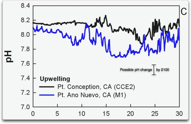 Zweitens, die mögliche Änderung des PH-Wertes bis zum Jahr 2100 ist im Vergleich zu diesen natürlichen Schwingungen nicht groß.