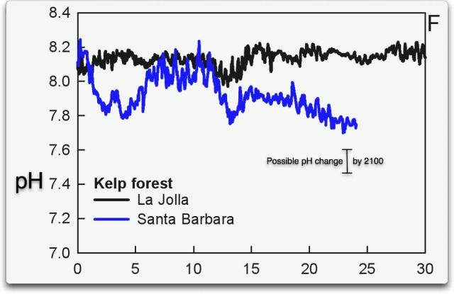 Erstens, es gibt eine ganze Reihe von Stellen im Ozean, an denen die PH-Schwankungen sowohl schnell vonstatten gehen und auch ein großes Ausmaß haben. Das Leben in diesen Teilen des Ozeans scheint weder von der Größenordnung noch von der Geschwindigkeit dieser Änderungen beeinflusst zu werden.