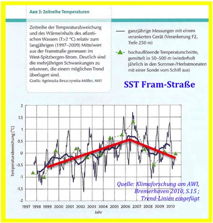 Auch in der Fram-Sraße zwischen Grönland und Spitzbergen ist kein Erwärmungs-Trend erkennbar, obwohl die Arktis sich angeblich dramatisch erwärmt :