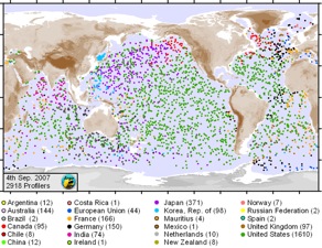 Zum Beispiel: Seit 1999 gibt es ein globales Netz von mittlerweile 3000 Bojen, die durch Auf- und Absteigen in den oberen 2000 Metern die Meeres-Temperaturen messen : ARGO.