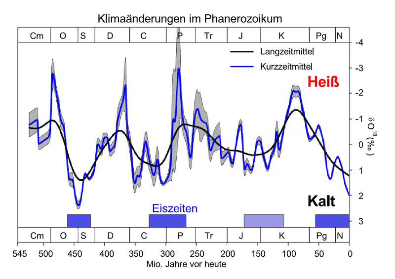 Das Verhältnis O18 zu O16 stellt eine Aufzeichnung der historischen Wassertemperatur dar. Eine Wassertemperatur um 10 bis 15 °C Grad kälter als heute repräsentiert Vereisung. Breitet sich das kältere Wasser in Richtung Äquator aus, regnet sich mit O18 angereicherter Wasserdampf in niedrigen Breiten ab. Der verbleibende Wasserdampf mit dem folglich höheren O16–Gehalt [2] kondensiert in höheren Breiten. Niederschlag und daher auch Gletschereis enthält Wasser mit einem geringen O18-Anteil. Da große Mengen von Wasser mit O16 als Gletschereis zurück gehalten werden, ist der O18-Gehalt im Ozeanwasser hoch. Eine Wassertemperatur um 5°C über den heutigen Werten repräsentiert eine Zwischeneiszeit, wenn der O18-Gehalt im Ozeanwasser geringer ist. Ein Plot historischer Wassertemperaturen mit der Zeit weist darauf hin, dass sich das Klima zyklisch geändert hat, und zwar mit langen Zyklen und harmonischen Wellen oder kürzeren Zyklen, die den langzeitlichen Zyklen überlagert sind. Diese Methode war besonders nützlich, um eiszeitliche Maxima und Minima im Pleistozän zu identifizieren.
