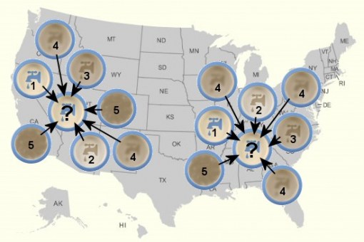 Bei der Homogenisierung werden die Daten gegen nahe gelegene Nachbarstationen innerhalb eines bestimmten Radius’ gewichtet. Und so könnte eine Station mit der Wertung „1“ mit den Daten benachbarter Stationen verschmutzt werden und mit einem neuen Wert aufwarten, „2,5“. Selbst Einzelstationen können viele andere Stationen bei den Homogenisierungs-Methoden von GISS und NOAA beeinflussen, denen die Bodentemperaturen in den USA hier und hier unterzogen werden.