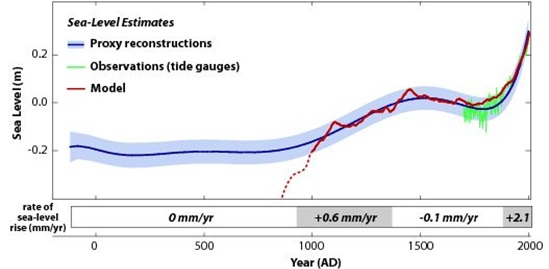 Da Klimacomputerspiele in der Öffentlichkeit offensichtlich an Glanz verloren haben, ist das PIK dazu übergegangen, seiner Studie einen vermeintlichen Wahrheitscharakter dadurch mitzugeben, dass sich ihre Studie auf tatsächliche Beobachtungen der letzten tausend Jahre stützt: “Erstmals bietet diese Studie damit eine umfassende Projektion für einen derart langen Zeitraum. Sie stützt sich dabei auf den tatsächlich beobachteten Meeresspiegelanstieg im vergangenen Jahrtausend sowie auf Szenarien für künftige Treibhausgasemissionen“ und weiter “Die neue Studie verwendet einen so genannten semi-empirischen Ansatz, der auf dem Zusammenhang zwischen beobachteter Temperatur und Meeresspiegel während der vergangenen Jahrhunderte basiert, um daraus Schätzungen für einen Meeresspiegelanstieg in Szenarien künftiger globaler Erwärmung abzuleiten und zu berechnen.“