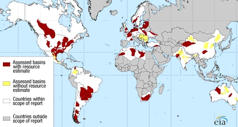 - Schiefergas Fundstellen- Quelle: »EIA, 2011«