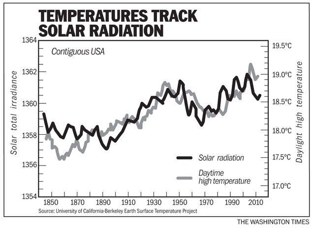 Selbst kleine Änderungen der Solarstrahlung können starke Auswirkungen auf die Temperatur und das Klima der Erde haben. Im Jahr 2005 hat einer von uns eine bemerkenswert starke Beziehung zwischen der Solarstrahlung und der Temperatur in der Arktis während der letzten 130 Jahre gezeigt. Seitdem haben wir ähnliche Beziehungen in allen Gebieten rings um die Arktis nachgewiesen, einschließlich des Festlandes der USA und China. Die Bestätigung einer Beziehung zwischen Sonne und Temperatur durch das alleinige Betrachten der Aufzeichnungen der täglichen Höchsttemperatur in den USA fügt der Stärke dieser Beziehung weiteres wissenschaftliches Gewicht hinzu.