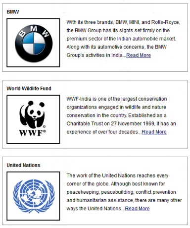 Es erscheinen zahlreiche Regierungs-Dienststellen, Banken und UN-Organisationen. Wenn man an Nachhaltigkeit denkt, denkt man nicht als erstes an einen Hersteller von Luxusautos. Dennoch, BMW war zweimal ein Sponsor.