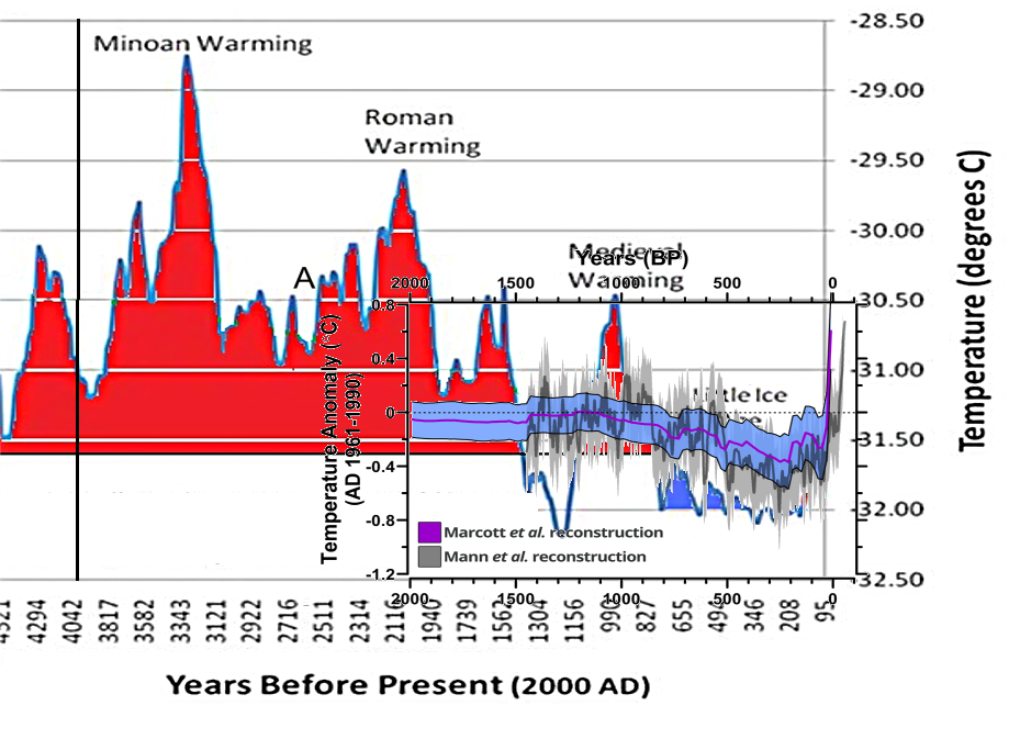 Behauptung von Marcott et al.: ‚Noch nie da gewesene’ Erwärmung im Vergleich zum GISP-Eisbohrkern