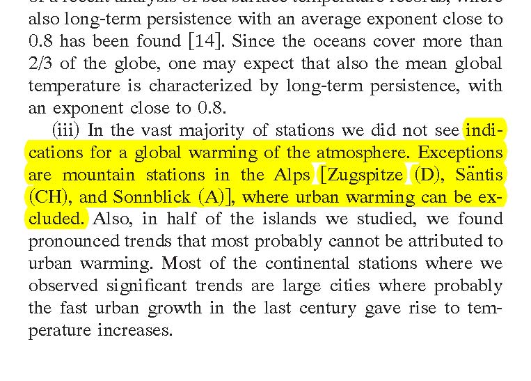 Bild 2: Die Aussage Schellnhubers et al. in der Zusammenfassung der in Bild 1 gezeigten Publikation ins Deutsche übertragen lautet „In der weit überwiegenden Zahl von Stationen haben wir keine Anzeichen für eine globale Erwärmung der Atmosphäre erkennen können„.