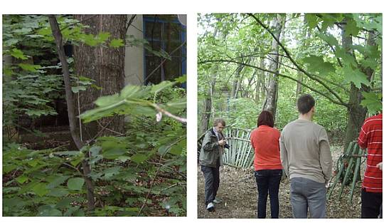 Im Jahr 1992 sah man die Häuser noch fast in Ordnung, umgeben von verwilderten Gärten. Heute findet man die einstöckigen Häuser kaum. Sie sind vom Wald überwuchert, die Bäume überragen die Häuser um das Doppelte. Wir haben unser Fahrzeug verlassen und sind auf einem Trampelpfad zu einem großen ehemaligen Kindergarten gegangen. Sehr anrührend: Ein zurückgelassener Teddybär.