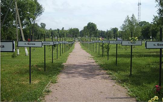 Für diese Dörfer wurde im Sperrgebiet eine eindrucksvolle Gedenkstätte in Form einer Allee mit Namensschildern angelegt. Zu manchen Schildern werden Blumen gebracht.