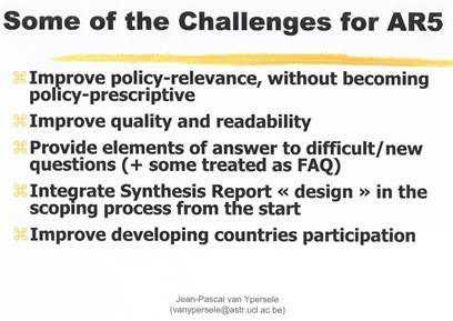Eine Präsentation zu den Representative Concentration Pathways (RCPs) [?] von Jean-Pascal Ypersele, Vizevorsitzender des IPCC, legt die Herausforderung offen.