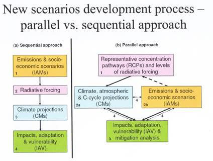 Der AR 5 der Arbeitsgruppe 1 des IPCC wird daher auf Szenarien basieren, die früher unter der Bezeichnung SRES bekannt waren. Jetzt nennt man sie RCP“.
