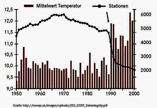 Im Jahre 2010 deckten zwei US-Wissenschaftler Joseph D´Aleo und Anthony Watts9 auf, dass seit etwa 1990 sehr viele Stationen in ländlichen Regionen, Höhenlagen und in höherer geographischer Breite aus der statistischen Klimatrend-Analyse entfernt wurden. Damit bekam weltweit der Typ des wärmeren Stadtklimas ein weitaus größeres Gewicht. Die gewünschte globale Erwärmung konnte mit dieser spezifischen Stationsauswahl eindrucksvoller vorgeführt werden. Eine nicht nur für die Klimageographie unglaubliche Manipulation.