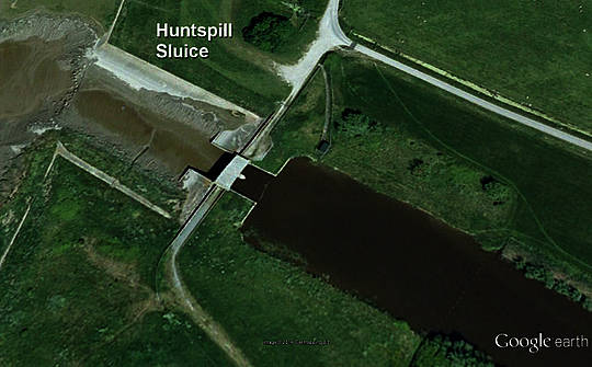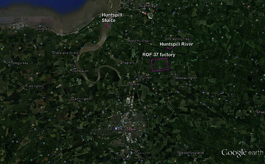 Um den Lesern zu helfen, folgen hier einige Bilder von Google Earth. Zunächst die Munitionsfabrik ROF37, den Huntspill River, die Huntspill-Sieltore und die Nähe zur Stadt Bridgwater: