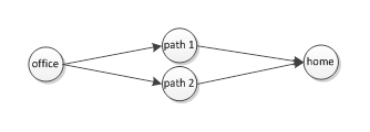 Nehmen wir an, Punkt A ist Ihr Büro und Punkt B Ihre Wohnung. An manchen Tagen werden Sie auf Weg 1 vom Büro nach Hause fahren. An anderen Tagen jedoch müssen Sie vielleicht erst noch einkaufen, oder Sie wollen Freunde treffen, oder Ihr Auto bleibt liegen, oder was auch immer, jedenfalls könnten diese Dinge es erforderlich machen, Weg 2 nach Hause zu nehmen. Also nehmen Sie Weg 2.
