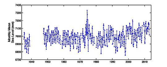 Glücklicherweise gibt es ziemlich genau in der Bahn des Taifuns Haiyan über die Philipinen die Pegelstation Cebu. Dort wird seit 1947 ununterbrochen der Meeresspiegel gemessen (Abbildung links, klicken zum vergrößern). Der Anstieg in den letzten 60 Jahren betrug dort insgesamt kaum 10 cm. In den letzten 15 Jahren war überhaupt kein Anstieg mehr zu beobachten. Es scheint also so, als würden diese Daten die Behauptung der WMO eher nicht stützen, es sei denn man glaubt daran dass ein 10 Zentimeter höherer Meeresspiegel einen signifikanten Einfluss auf die Zerstörungskraft eines Taifuns hat.