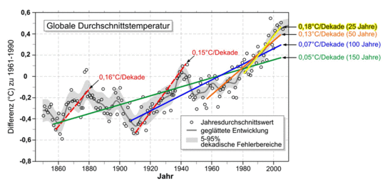 An diesen Aussagen ist zunächst einmal nichts falsch. seit 1850 ist es etwa 0,9 °C wärmer geworden.