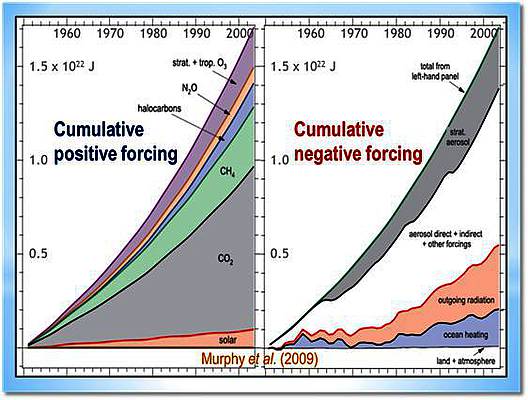 Abbildung 2 zeigt das Ausmaß dieser Manipulationen. Der positive Antrieb durch CO2-Emissionen und der negative Antrieb durch anthropogene Aerosole sind sichtlich fast identisch: