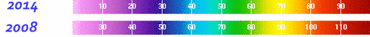 Was hier gemacht wurde: Man die Farbskala verschoben, jedoch die Temperaturspanne der jeweiligen Farbe gleich gelassen. Zum Vergleich folgen hier die beiden Farbskalen: