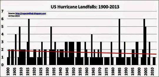 Sie sagen voraus oder projizieren, dass Hitzewellen immer intensiver werden, dass Dürren und Überschwemmungen häufiger und stärker auftreten, dass Hurrikane häufiger und stärker werden, dass der Meeresspiegel um vier Fuß [ca. 122 cm] steigen wird (im Vergleich zu 8 Inches [ca. 20 cm] seit 1880), dass Waldbrände immer schlimmer und zahlreiche Spezies verschwinden werden. Unwahrscheinlich.