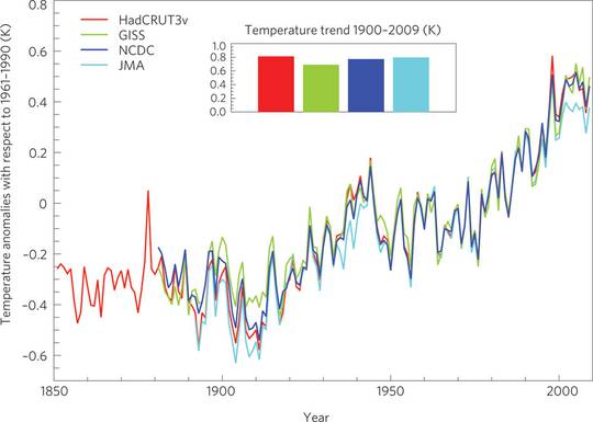 Weltweite Temperaturtrends werden verwendet, um ein Erwärmungssignal infolge des zunehmenden CO2-Gehaltes zu schätzen. Sie sind folglich die Schlüsselparameter für die Grundlage einer angemessenen Klimapolitik. Trotz der Tatsache, dass das zusammenhängende Gebiet der USA die beste Verfügbarkeit von Temperaturdaten in der Welt aufweist, gibt es eine große Differenz zwischen jüngst (2) und früher (1) veröffentlichten Temperaturdaten von GISS. Dies wirft die Fragen nach der Robustheit der Daten auf. Der aus den nicht adjustierten Daten des Global Historical Climate Network (GHCN) berechnete Temperaturtrend in den USA zeigt, dass die dreißiger Jahre die wärmste Dekade waren, etwa 0,2 K wärmer als 2000 bis 2009. Der berechnete Temperaturtrend basiert auf Daten von 826 Stationen und ist praktisch identisch mit dem von Hansen et al. (1) berechneten Temperaturtrend. Der berechnete Temperaturtrend von 1930 bis 2010 ist etwa 0,5 K kälter als der aktualisierte GISS-Temperaturtrend in den USA (2) und etwa 0,4 K kälter als der aus den HadCRUT-Stationen berechnete Temperaturtrend. Der in den HadCRUT-Daten gefundene verstärkte Erwärmungstrend scheint mehr auf die Auswahl der Messstationen als auf die Adjustierungen der Stationsdaten zurückzuführen zu sein.