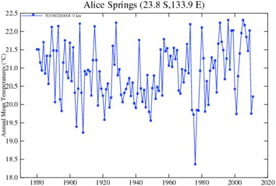 Das Nördliche Territorium von Australien befindet sich in der einmaligen Lage, eine Ausdehnung größer als Frankreich zu haben mit einer Bevölkerung von 200.000 und nur drei meteorologischen Stationen, die seit über 40 Jahren in Betrieb sind. Das sind die Stationen Darwin (DW), Alice Springs (AS) und Tennant Creek; und nur zwei davon, nämlich DW und AS, messen seit über 100 Jahren. Diese Stationen liegen 500 km voneinander und über 1000 km von benachbarten Stationen in Australien entfernt. Die Homogenisierung von Daten zwischen unterschiedlichen Messstellen an der gleichen Stelle ebenso wie die Methode, die fehlenden Daten abzuleiten, um mindestens 100 Jahre mit Daten abzudecken, werden detailliert analysiert, und die Auswirkungen auf die Temperaturtrends werden gleich danach untersucht. Die Verwendung ordnungsgemäß homogenisierter Daten aus über 130 Jahren und eine lineare Anpassung (fitting) ergibt hinsichtlich der Maximum- und Minimum-Temperaturen einen Trend von +0,009°C und +0,057°C pro Dekade für Alice Springs sowie -0,025°C und 0,064°C pro Dekade für Darwin. Mit den verfügbaren Daten besteht die einzige Option zur Erzeugung von Erwärmungstrends darin, die kalten Jahre Mitte der siebziger Jahre überzubetonen, was die Rückkehr zu wärmeren Temperaturen erhöht. Die Berechnung von Trends mit Beginn im Jahre 1980 zeigt immer noch eine klare Erwärmung in Alice Springs, aber ebenso klar eine Abkühlung in Tennant Creek, und ein gemischtes Verhalten mit steigenden Höchsttemperaturen und fallenden Tiefsttemperaturen in Darwin.
