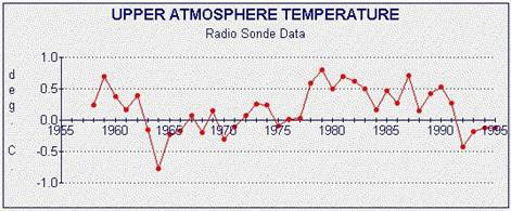Am 4. Juli 1996, kurz nach der Enthüllung, wartete das offensichtlich willfährige Journal Nature mit einem Artikel auf unter der Überschrift A Search for Human Influences On the Thermal Structure of the Atmosphere”. Mitgeliefert wurde eine nur allzu bekannte Liste von Autoren – Santer, Wigley, Mitchell, Oort und Stouffer. Er bot beobachtbare Beweise, die zeigten, dass die Modelle akkurat waren. Eine Graphik ist so viel wert wie tausend Worte, wie Manns „Hockeyschläger“ zeigte, und genauso war es mit Santers ,erkennbarem menschlichen Einfluss‚. John Daly reproduzierte die Graphik von Santer et al. (Abbildung 1) mit dem aufwärts gerichteten Temperaturtrend in der oberen Atmosphäre: