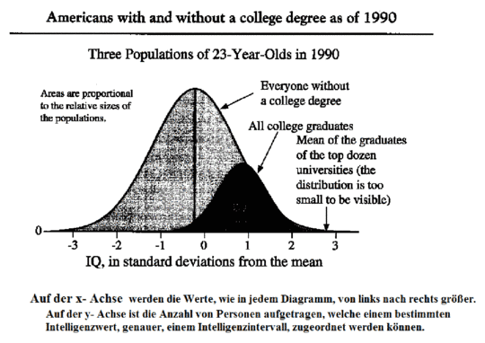Intelligenzquotientsverteilung von Amerikanern mit und ohne College-Abschluß (1990). Quelle: The Bell Curve, Intelligence and Class Structure in American Life