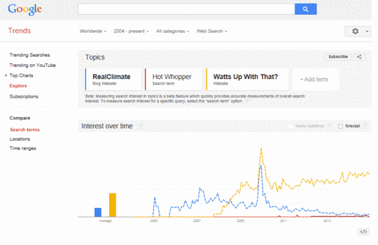 Falls man bei RealClimate damit weitermacht, Blogbeiträge über WUWT-Widget zu schreiben und nachahmt, was Sou bei Hot Whopper macht – wer weiß, wie weit das Interesse an RealClimate noch sinken wird!