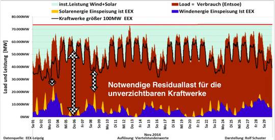 Warum die Argumentation von Herrn  Rainer Baake, Staatsekretär im BMWI,  energietechnisch und energiewirtschaftlich unvertretbar ist, kann mit dem neben- stehenden Leistungsdiagramm für den  Monat November 2014 bereits hinreichend bewiesen werden:
