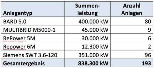 Tabelle 1: Jahreszahlen der Windenergie Offshore in der Ostsee
