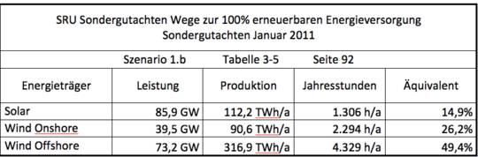 Tabelle 0: Auszug aus dem SRU Gutachten 2011