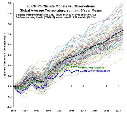 Oder mit den Messungen der Temperatur und den Satellitenaufzeichnungen, wenn man das bevorzugt: