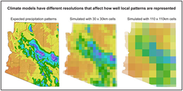 Das fundamental unlösbare Problem der Auflösung in den GCMs wird sehr gut illustriert in Gestalt eines Gewitterclusters bei seinem Weg über Arizona. 110 X 110 Quadrate sind die feinstmögliche computertechnische Auflösung in CMIP5. Nutzlos zur Auflösung konvektiver Prozesse.
