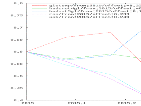 Wie man sieht, beginnen alle Linien an der gleichen Stelle im Januar 2015. Dies macht es einfach, den Januar 2015 mit der jüngsten Anomalie zu vergleichen.