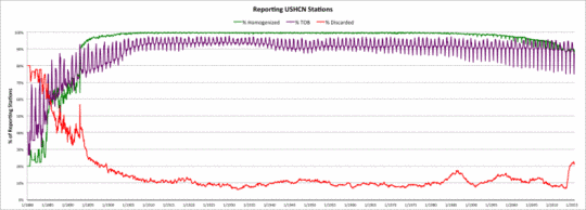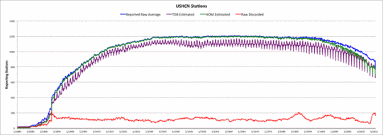 In einem vorangegangenen Beitrag (hier, auf Deutsch beim EIKE hier) wurde gezeigt, dass die auf die GHCN-Daten angewendeten Adjustierungs-Modelle geschätzte Werte für etwa 66% der Informationen erzeugt hat, die den Verwendern der Daten zur Verfügung gestellt wurden wie etwa GISS. Weil die US-Daten einen relativ großen Beitrag zum Umfang der GHCN-Daten leisten, nimmt sich dieser Beitrag die Auswirkungen der Adjustierungs-Modelle auf die USHCN-Daten vor. Die Graphiken in diesem Beitrag verwenden den um 14 Uhr am 25.9.2015 heruntergeladenen Datensatz von der USHCN FTP Site.