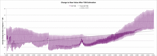 Änderung der USHCN-Rohdatenwerte nach der Beobachtungszeit-Schätzung