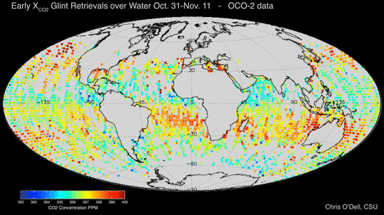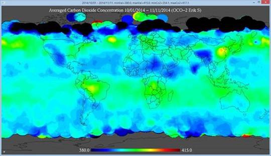 Abbildung 1: von der NASA gezeigte OCO-2-Daten vom 1. Oktober bis zum 11. November 2014