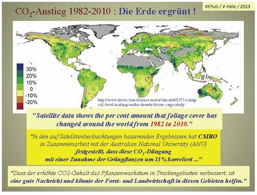 CO2 ist die Basis für die Photosynthese, folglich: Je mehr CO2 – um so mehr Vegetation, um so höhere Ernte-Erträge.