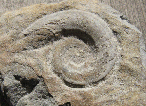 Bild 3. Das im Kalk der Insel Gotland eingebettete Fossil lässt erkennen, dass die Kalkschalenbildung mariner Lebewesen auch in Zeiten extrem hoher CO2-Konzentrationen nicht beeinträchtigt war