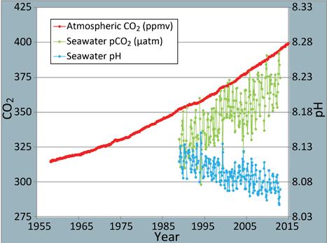 1. Durch das Ansteigen des CO2-Anteils in der Luft kommt mit der Zeit mehr CO2 in die Ozeane, was die angebliche Versauerung bewirkt.