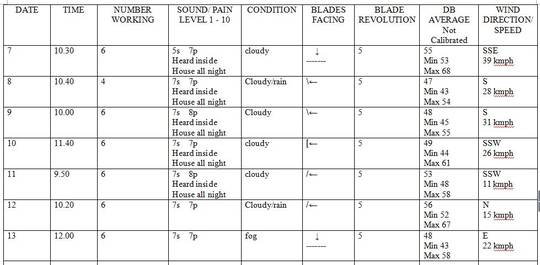 Anwohner neben Windparks in Irland dokumentieren detailliert das unnötige tägliche akustische Elend