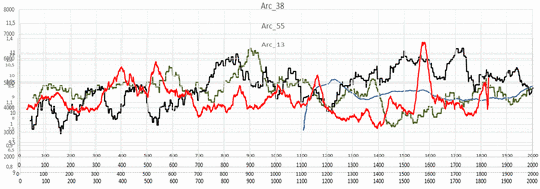 Aus der Arktis sind die Proxis: ARC_55; 38¸26; 13 dargestellt (Bild 8). Diese repräsentieren einen begrenzten räumlichen Bereich und man sollte erwarten, dass sie deshalb ähnliche Verläufe zeigen.