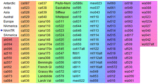 Bild 14.2 Liste aller Proxis Arctic NAmericaTR des Projekt PAGES 2k Datensatzes. Quelle: Active viewer for the Pages 2K Proxis