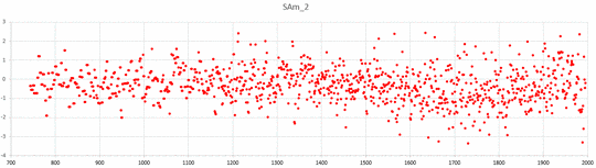 Bild 17 zeigt den Datensatz SAm_2 im Original ohne verbindende Linien. Wieder besteht der große Verdacht, dass der Datensatz im Wesentlichen aus Rauschen besteht.